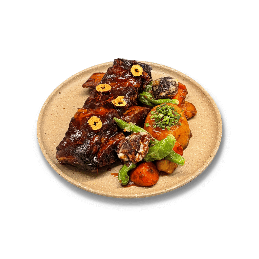 두껍게 정형된 LA갈비를 간장양념으로 찜하고 그릴에서 다시 구워낸 새로운 LA갈비 요리